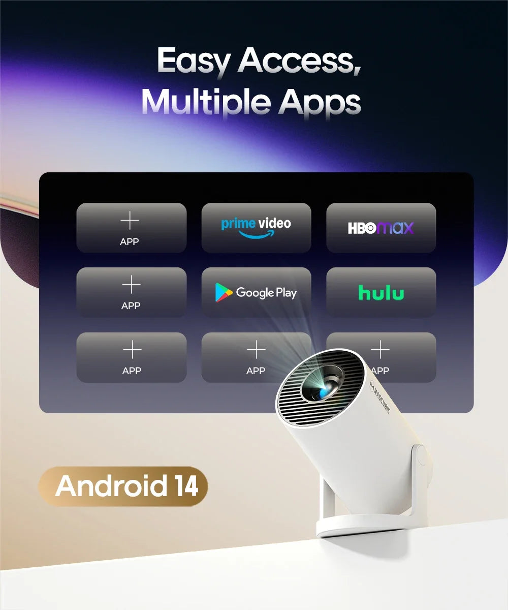 Magcubic Portable Projector offers stunning 8K resolution, vibrant colors, and seamless connectivity. Perfect for on-the-go entertainment, enjoy movies, gaming, and presentations anywhere with this compact, lightweight, and feature-packed projector. Your personal cinema, anytime, anywhere.